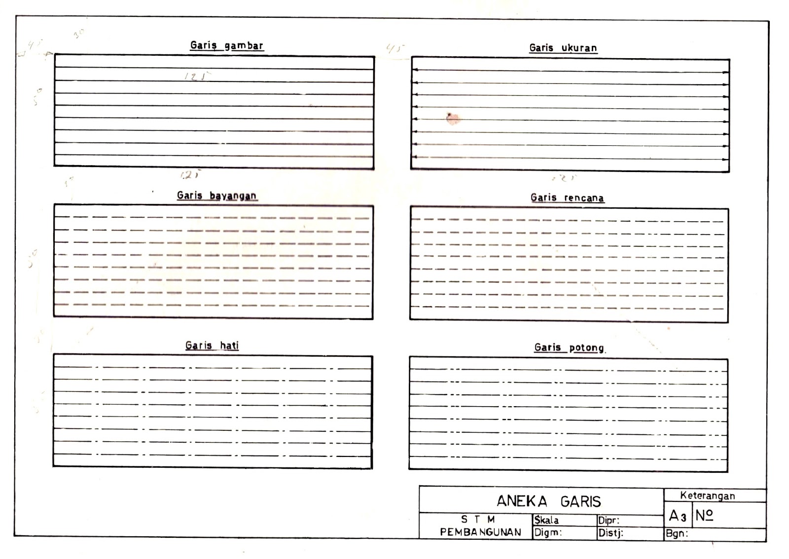 Silahkan di gambar : Aneka Garis dibawah ini, pada kertas Gambar A3.