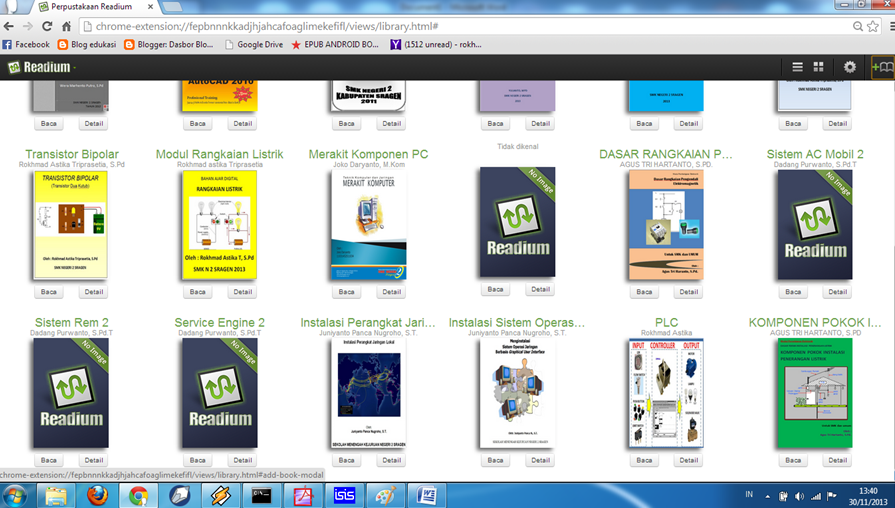 - Google Chrome -> Readium -> install dari chrome store -> beberapa video tidak dapat diputar