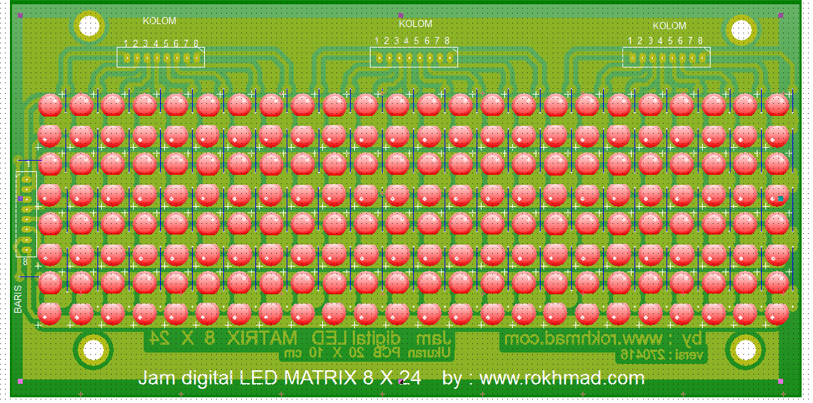 Disini saya menggunakan sebanyak 192 LED yang terbagi dalam 8 baris LED dan 24 kolom LED.