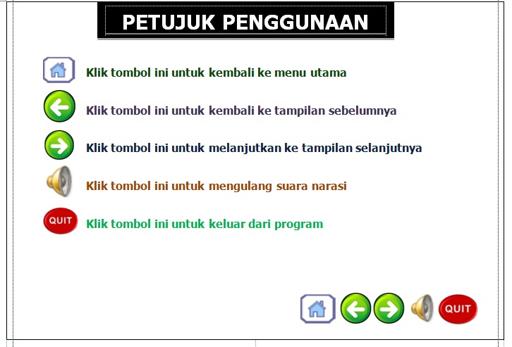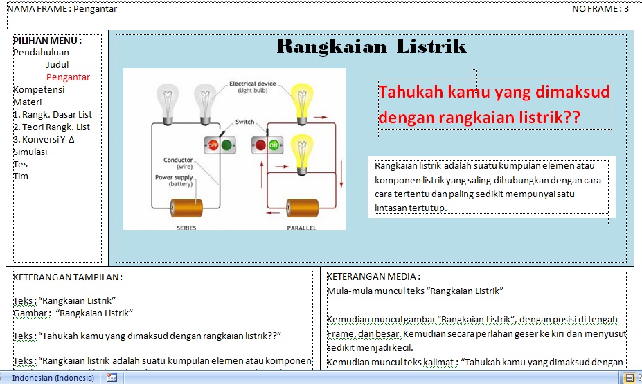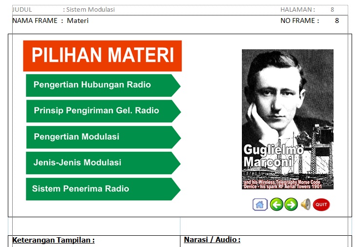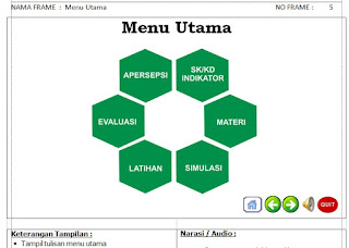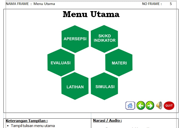 Dengan adanya naskah media pembelajaran tersebut, maka pembuat media pembelajaran interaktif tidak kesulitan dalam mengatur tombol-tombol dan menu-menu yang akan menghubungkan antar frame dalam sebuah media pembelajaran. Selain itu semua instruksi di jelaskan secara detail di naskah media pembelajaran ini.