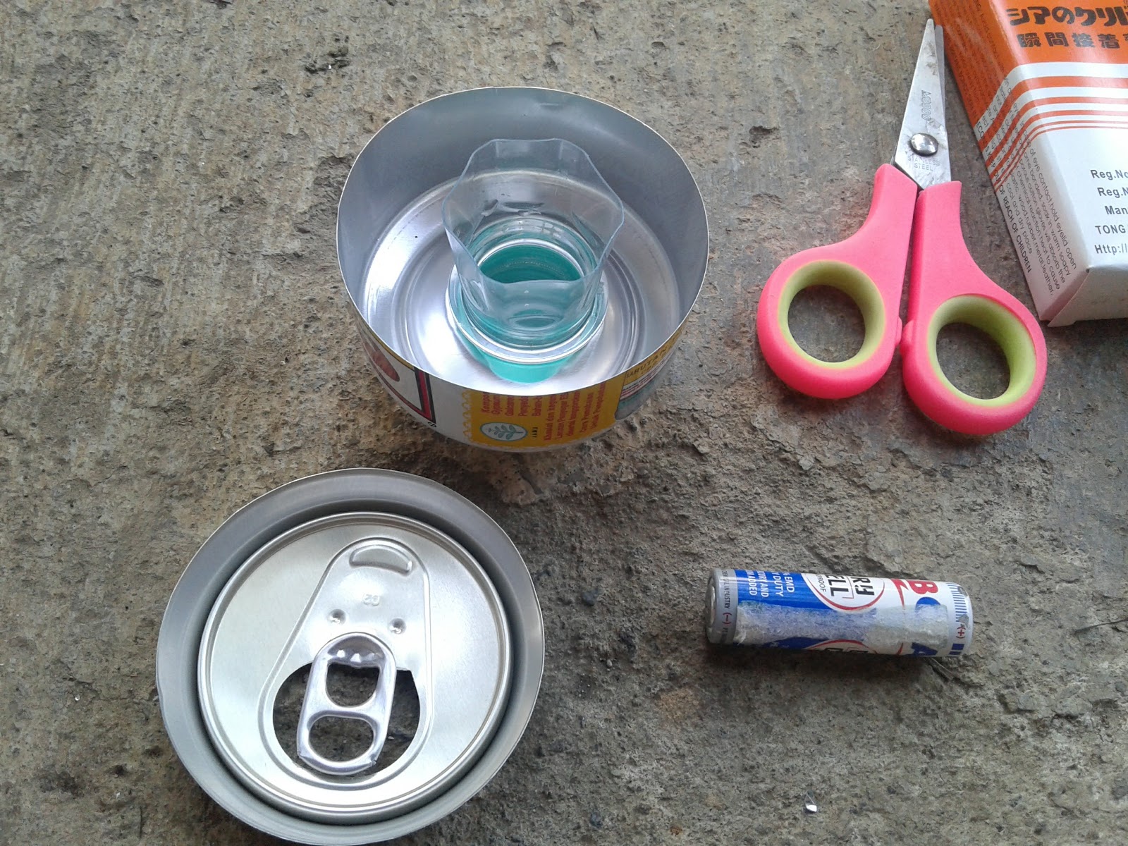 Potong menjadi 2 bagian kaleng bekas, yang terdiri dari bagian wawah dan abgian atas, kemudian ukurlah tingginya sesuai dengan tinggi batrei ABC AA