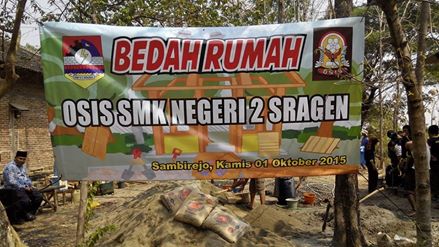 SMK-TwoSra--- Hari ini bertepatan dengan Hari kesaktian Pancasila tanggal 1 Oktober 2015, SMK Negeri 2 Sragen menyalirkan Bantuan Bedah Rumah kepada Warga orangtua siswa SMK N 2 Sragen di Kecamatan Sambirejo Sragen.
