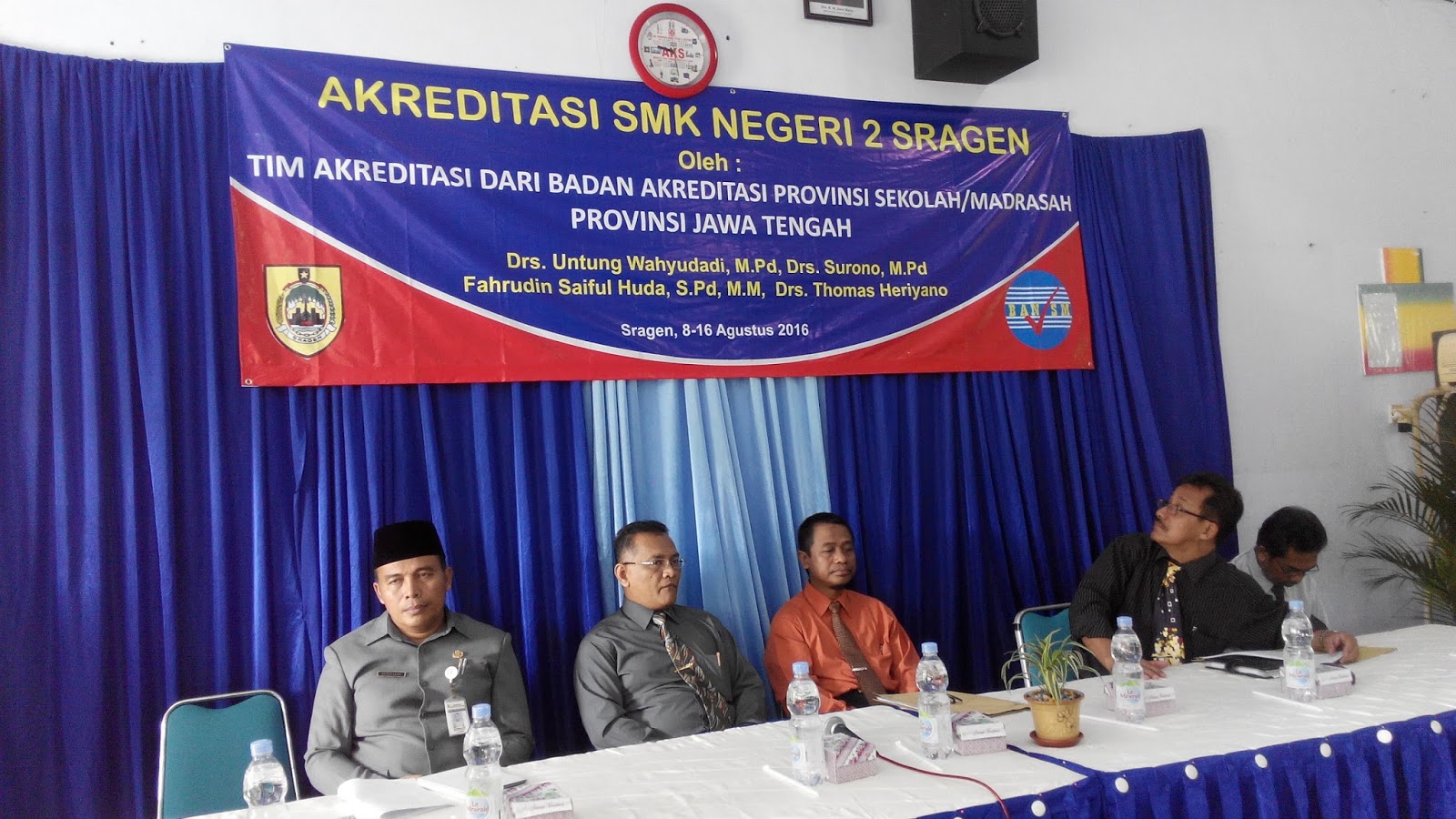 Mulai tanggal 8 - 16 Agustus 2016 SMK Negeri 2 Sragen menerima kunjungan TIM Asessor Akreditasi dari Badan Akreditasi Provinsi Sekolah / Madrasah Provinsi Jawa Tengah.