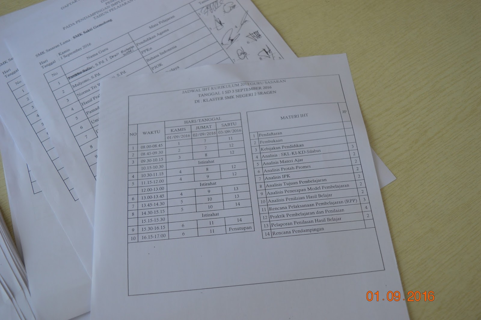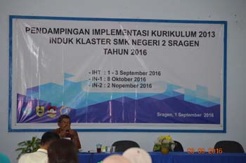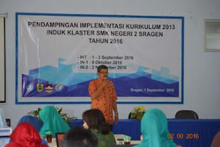 Sebanyak 50 Guru sasaran dari beberapa SMK yang berada dalam Klaster SMK Negeri 2 Sragen, mengikuti IHT Implementasi Kurikulum 2013 di Aula SMK Negeri 2 Sragen.