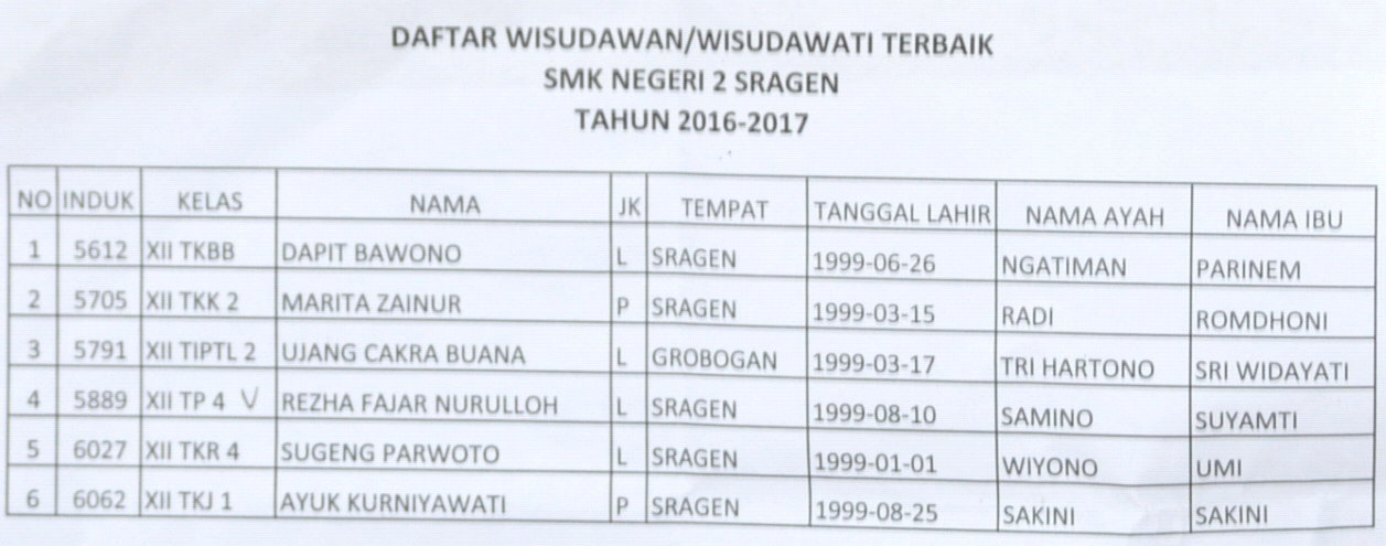 Hasil Ujian Nasional SMK Negeri 2 Sragen :