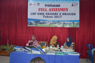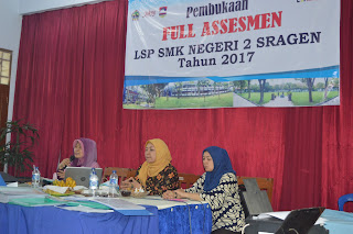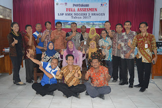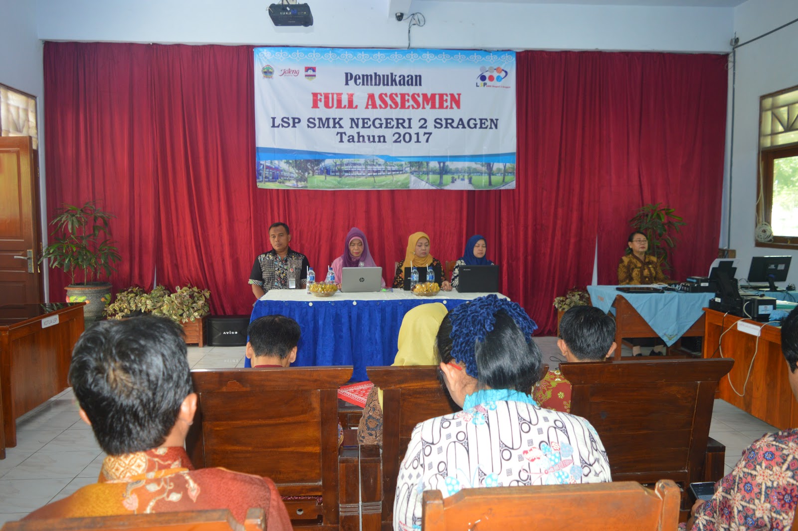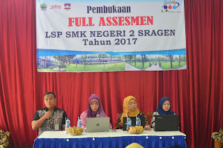 Full AssesmentDihadiri oleh 21 (Duapuluh satu) orang terdiri dari Kepala Sekolah SMKN 2 Sragen selaku Dewan Pengarah LSP, Ketua LSP dan Pengurus LSP dan Asesor Kompetensi SMKN 2 Sragen.
