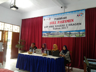 Pada acara pembukaan dihadiri oleh Kepala Sekolah SMKN 2 Sragen dan seluruh pengelola LSP SMKN 2 Sragen serta Asesor Kompetensi.