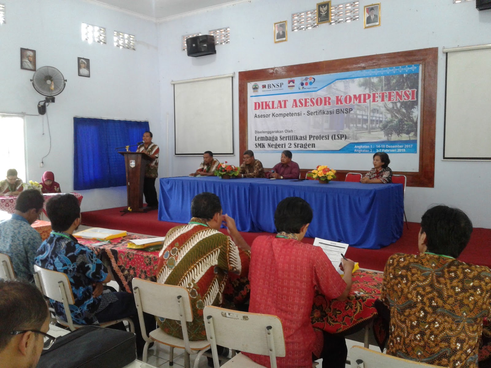 SMK Negeri 2 Sragen, pada tanggal 3-7 Februari 2018 menyelenggarakan diklat Asesor Kompetensi yang diikuti oleh 50 guru SMK dari beberapa SMK di Provinsi Jawa Tengah.