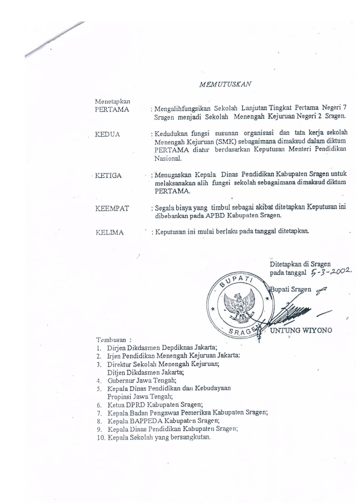 Kemudian Berkembang, menjadi SMP Negeri 7 Sragen, dan menjadi SMP Ketrampilan 7 Sragen