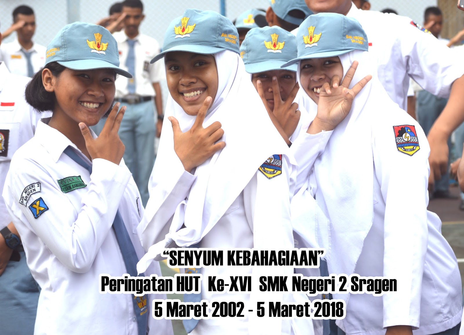 Tak terasa, SMK negeri 2 Sragen teleah berdiri selama 16 Tahun. SMK negeri 2 Sragen, yang berdiri Pada tanggal 5 Maret Tahun 2002, berdasarkan SK Bupati Sragen Nomor 421.5/36/03/2002 tanggal 5 Maret 2002, menjadi tonggak bersejarah berdirinya SMK Negeri 2 Sragen, yang sampai sekarang diperingati sebagai hari lahirnya SMK N 2 Sragen.