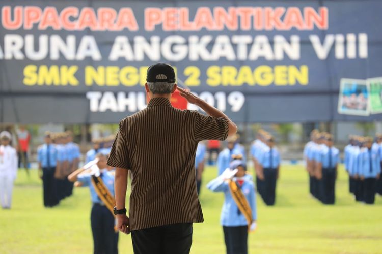Kehadiran Ganjar Pranowo di upacara pelantikan taruna itu disambut antusias. Pengelola akun Instagram @smknegeri2sragen mengunggah foto Ganjar Pranowo saat memimpin upacara.