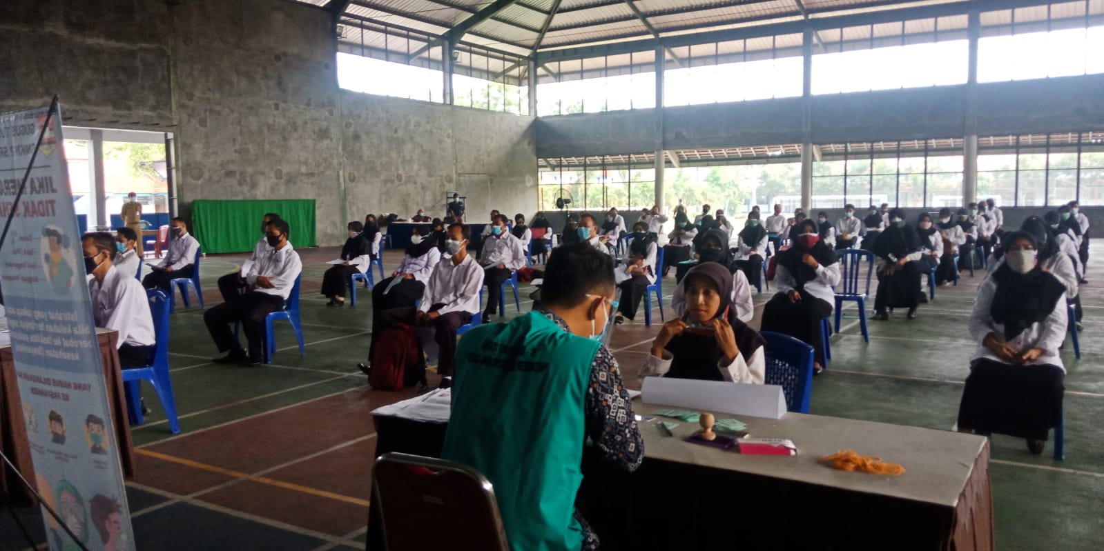 proses pemberiksaan dokumen dan tes Covid 19 oleh satgas Covid 19 SMK N 2 Sragen