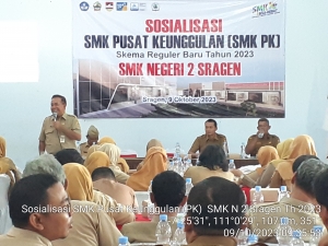 Dalam kegiatan Sosialisasi SMK PK yang dihadiri Kepala SMK Negeri 2 Sragen, Dr. Sutikno, S.Pd, M.Pd, Pengawas SMK Bapak Drs. Yonas Setyo Nugroho, dan Kepala Cabdin VI Drs. Sunarno, M.Pd.