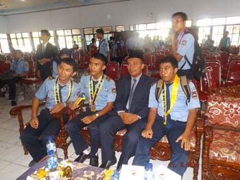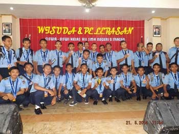 Acara wisuda dilanjutkan dengan pengalungan samir kepada para peserta didik terbaik tiap jurusan, yang diraih oleh ;