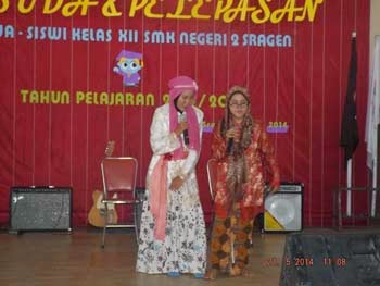Kegiatan Akhirusannah dan wisuda dilanjutkan dengan acara hiburan, yang pertama tampil adalah paduan suara SMK N2 Sragen dengan menyanyikan lagu Terimakasihku dan Mars SMK Negeri 2 Sragen. Kemudian tampil dari English Club dengan pembimbing Mr. Pitoyo Meiyono, Mrs. R. Jajik Armadani, Mrs. Fadjar wahjoeni, Mrs. Umi Sholikhak, Mrs. Sari Purningsih dengan menampilkan Drama Bilingual (inggris - Jawa) dengan tema Malin Kundang.
