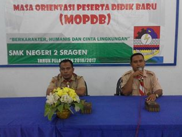 Kepala SMK N 2 Sragen Sugiyarso dan Wks Kesiswaan Setyanjadi dlama kegiatan Sosialisasi Ketaruanaan kepada Orang Tua / Wali Kelas X