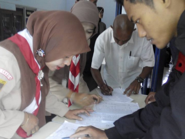 Orang Tua kelas x mengisi daftar Hadir dalam kegiatan sosialisasi Sistem Ketarunaan Bagi Kelas X