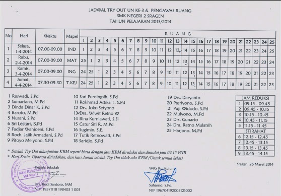 Pengawas try out ke 3 tanggal 1 - 4 April 2014 telah di Rilis