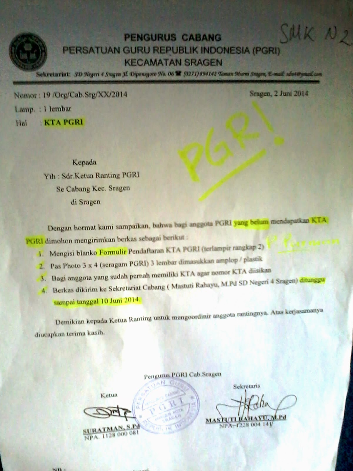 Tanggal : 06/06/2014Informasi pembuatan kartu anggota PGRI