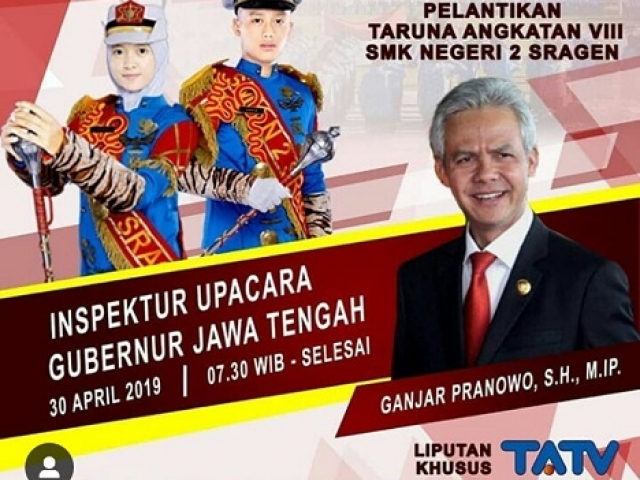 Pelantikan Taruna SMK N 2 Sragen Angkatan VIII oleh Gubernur Jateng Bapak : Ganjar Pranowo