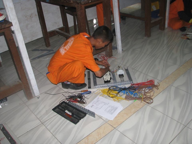 Siswa melakukan praktek Instalasi kontrol motor star delta dan lampu gudang |