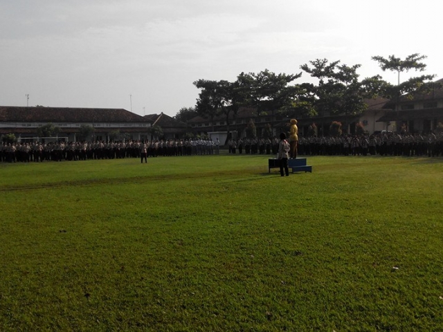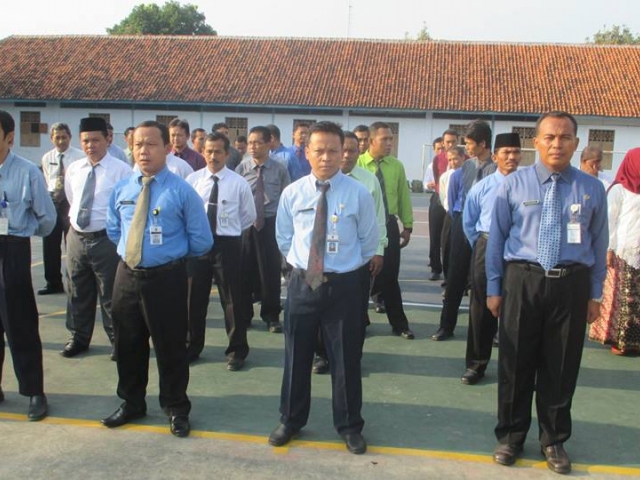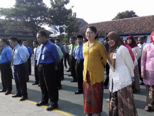 ![]() Ibu guru memakai kebaya, bapak guru memakai kemeja berdasi | ![]() Ibu Sri widowati selaku pembina upacara |