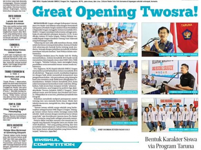 ![]() Pelatihan Jurnalistik Dari Radar Solo Zetizen 2016, pembukaan dengan tari-tarian | ![]() Pelatihan Jurnalistik Dari Radar Solo Zetizen 2016,dimuat di Radar Solo |