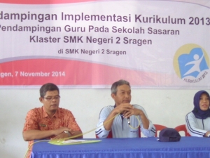 Hari Jumat, 7 Novermber 2014 bertempat di SMK Negeri 2 Sragen, dilaksanakan Pendampingan Imploementasi Kurikulum 2013, yang di ikuti lebih dari 130 peserta dari SMK kabupaten Sragen Klaster SMK Negeri 2 Sragen yaitu :