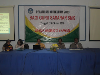 Dalam rangka untuk meng implementasikan Kurikulum 2013, di SMK Sasaran Baru, maka Guru-guru SMK Kabupaten sragen mengikuti diklat d selama 6 hari mulai tanggal 20 - 25 Juni 2016.