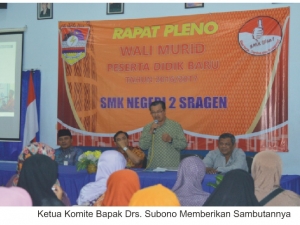 Bardasarkan hasil seleksi penerimaan Peserta Didik Baru (PPDB) Tahun Pelajaran 2016/2017 yang dapat dilihat di website PPDB Online www.ppdb-sragen.net maka Komite SMK Negeri 2 Sragen dan Kepala SMK Negeri 2 Sragen mengundang orangtua/wali siswa yang dinyatakan diterima untuk mengadakan Sosialisasi dan penyamaan Visis-misi sekolah kepada orang tua / wali siswa baru SMK N 2 Sragen.
