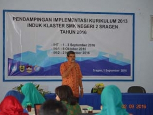 Sebanyak 50 Guru sasaran dari beberapa SMK yang berada dalam Klaster SMK Negeri 2 Sragen, mengikuti IHT Implementasi Kurikulum 2013 di Aula SMK Negeri 2 Sragen.