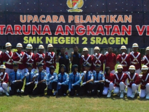 Sragen, 3 Mei 2018. SMK Negeri 2 Sragen menyelenggarakan pelantikan taruna angkatan VII. Kegiatan ketarunaan yang dilaksanakan di SMK Negeri 2 Sragen, yang menyatakan bahwa siswa kelas x telah berhasil menempuh kegiatan pendidikan karakter selama 1 tahun, yang dikemas dalam kegiatan pendidikan ketarunaan.