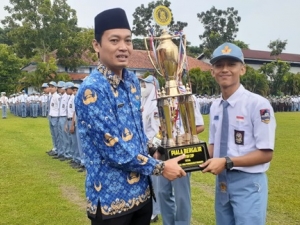 SRAGEN. Bertempat di lapangan upacara SMK Negeri 2 Sragen, setelah kegiatan upacara bendera, dilaksanakan penyerahan Piala Kejuaraan Lomba Futsal tingkat Pelajar SMA/SMK Jateng-DIY yang diselenggarakan oleh Universitas Tunas Pembangunan ( UTP) Surakarta.