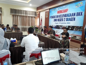 Sragen, 14/11/2023, SMK Negeri 2 Sragen menyelenggarakan Workshop Penguatan Kelembagaan BKK SMK N 2 Sragen. Dalam kegiatan ini sebagai narasumber oleh Kepala Dinas Tenaga Kerja dan Transmigrasi Kabupaten Sragen bapak Agus Winarno, S.Sos, M.Si didampingi oleh Kepala SMK Negeri 2 Sragen Dt. Sutikno, S.Pd, M.Pd. Kemudian narasumber dari Dunia Usaha dan Industri PT. Solo Abadi Indonesia hadir ibu C Lintang Larasati. Narasumber berikutnya dari Politeknik LPP (Lembaga Pendidikan Perkebunan) Yogyakarta, bapak Yuniadi, S.T,M.Eng.