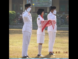 Kegiatan Pengibaran sang saka merah putih berlangsung Hikmad dan lancar, dan dilanjutkan dengan pembacaan UUD 1945 oleh saudara Nurul Qoiriyani dan pembacaan Teks Pancasila yang ditirukan Oleh Semua Peserta Upaca oleh Pembina Upacara.