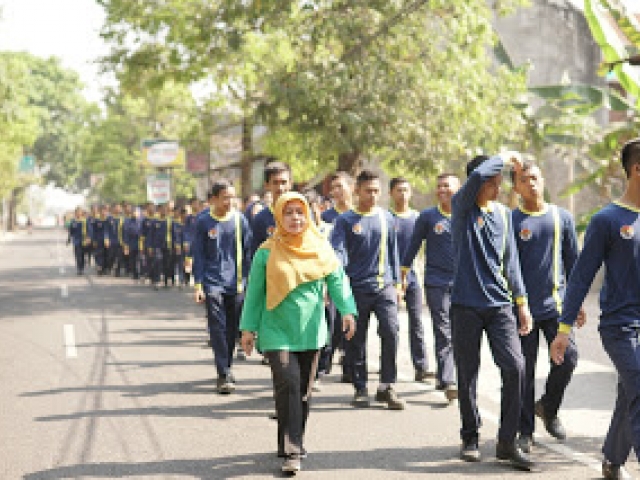 Bapak Sugiyarso membuka kegiatan gerak jalan sehat diikuti seluruh civitas SMK N 2 Sragen