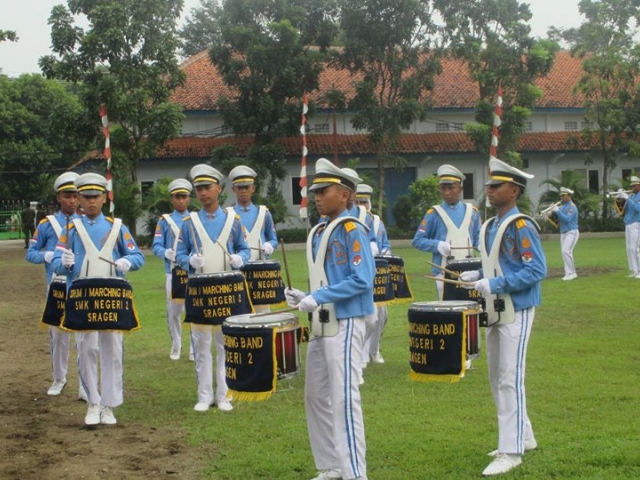 Marching Band SMK N 2 Sragen unjuk kebolehan dalam acara Pelantikan taruna angkatan v