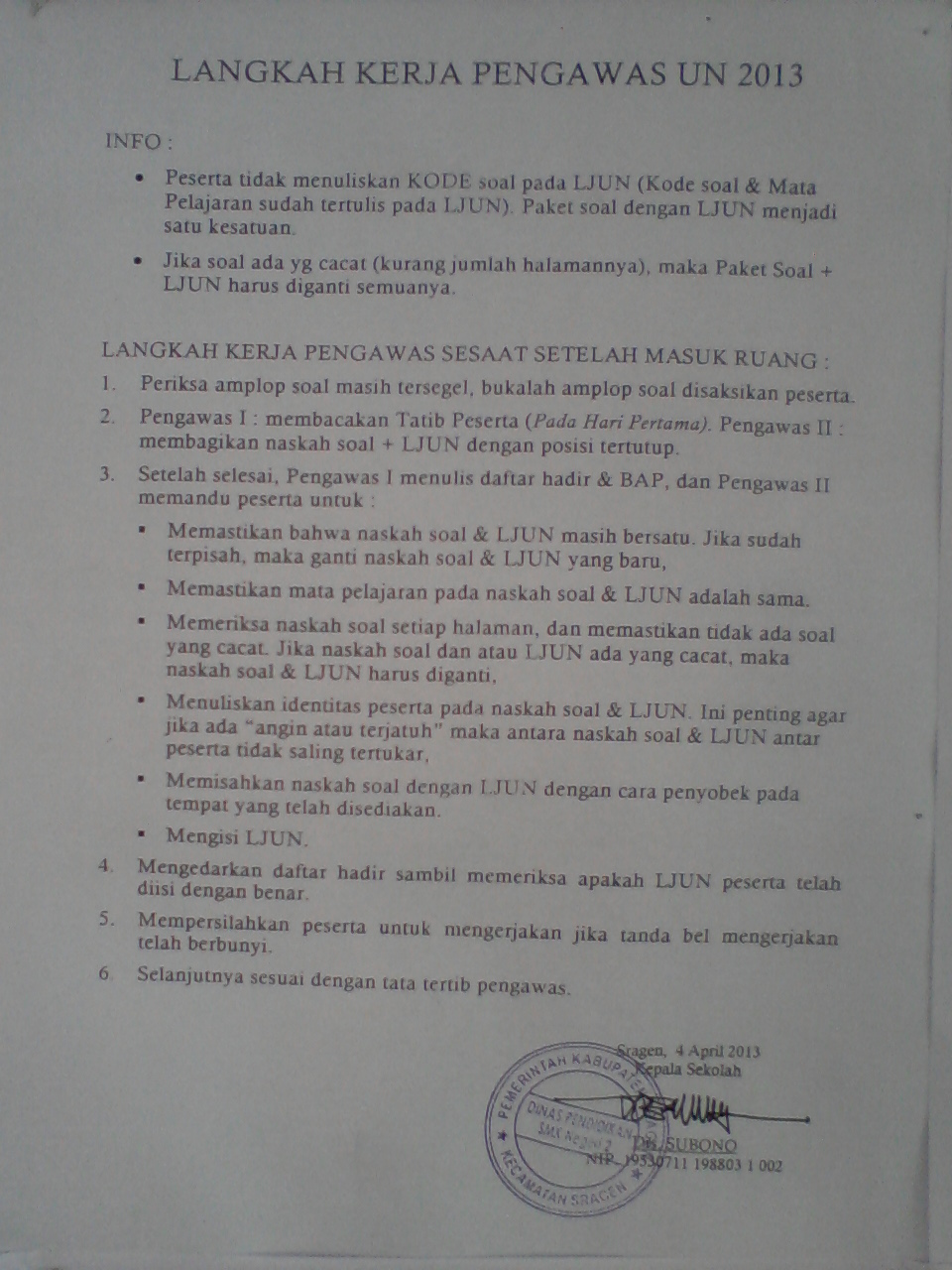 Langkah Kerja Pengawas UN